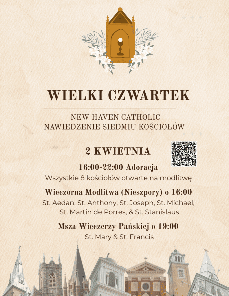 Wielki Tydzień jest zwieńczeniem naszego wielkopostnego przygotowania i dyscypliny. Zapraszam wszystkich do podjęcia pięknej tradycji „Wizytacji Siedmiu Kościołów w Wielki Czwartek”. Zazwyczaj wierni uczestniczą w nabożeństwach w jednym kościele, jednak wszyscy tworzymy jedną, większą wspólnotę parafialną. Odkryjmy razem wiarę i piękno całej naszej parafii, naśladując ostatnie kroki naszego Pana prowadzące na Kalwarię. W każdym kościele będzie możliwość modlitwy przy specjalnym Ołtarzu Adoracji (Ciemnicy), rozważając uwięzienie Jezusa oraz siedem miejsc, które nawiedził od momentu modlitwy w Ogrójcu aż do ukrzyżowania. Wszystkie nasze kościoły będą otwarte do modlitwy od godziny 16:00 do 22:00. Każdy może wybrać własną trasę oraz liczbę odwiedzonych świątyń. Rycerze Kolumba będą pełnić wartę honorową i witać wiernych w każdym kościele. Dostępne będą również materiały z informacjami o poszczególnych świątyniach oraz modlitwami na czas odwiedzenia. W sześciu kościołach, w których nie będzie Mszy Wieczerzy Pańskiej, w Wielki Czwartek, zostaną odprawione Nieszpory o godzinie 16:00. Niech ten czas stanie się dla nas wszystkich źródłem łaski oraz jedności w naszej parafii. -Ks. Dolan